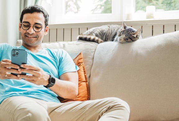 Guy sitting on a couch with his phone.