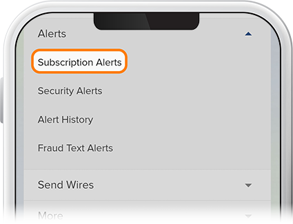 Tap Menu, scroll to the Alerts drop-down and select Subscription Alerts.